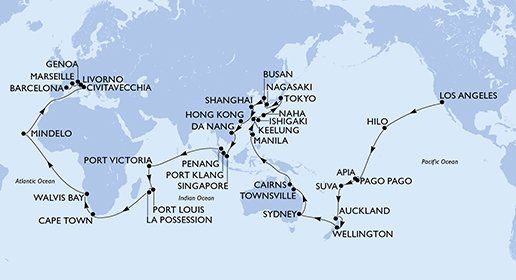 100 Night Cruise sailing from Los Angeles, California onboard MSC Magnifica